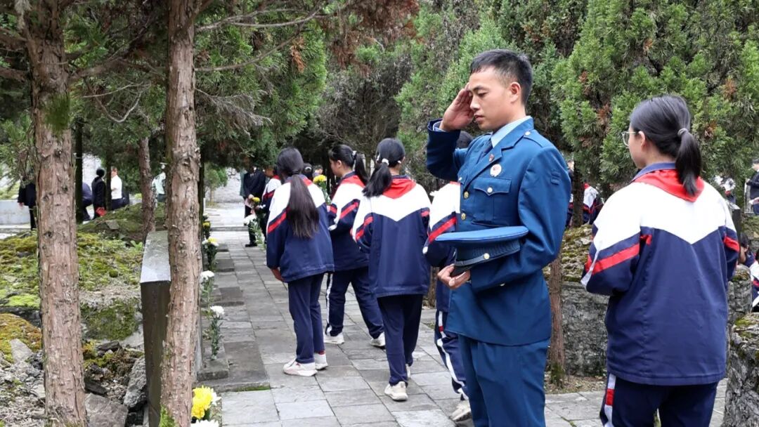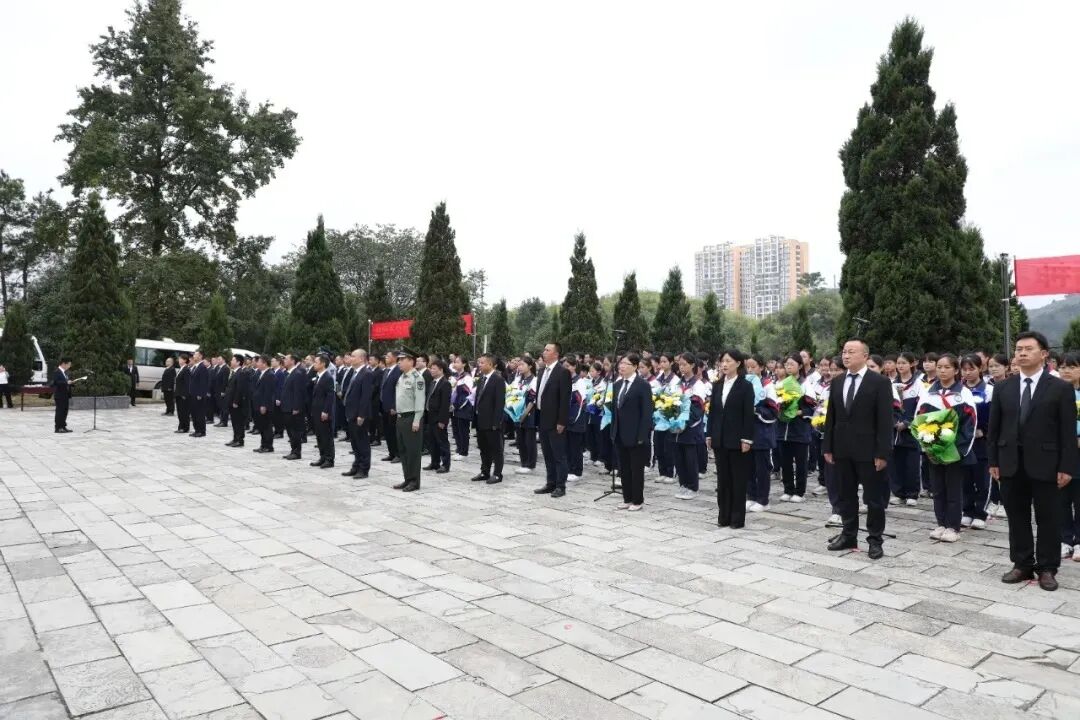 仪式在雄壮激昂的中华人民共和国国歌《义勇军进行曲》中开始,全体人员肃立在革命烈士纪念碑前,怀着沉重的心情默哀致敬。随后,朝气蓬勃的少先队员以清澈而坚定的声音唱响《我们是共产主义接班人》,歌声在陵园上空回荡,传递着对革命先辈的深深敬仰与传承红色基因的坚定信念。伴随着庄严低沉的《献花曲》,礼兵们迈着沉稳坚定的步伐,抬起花篮缓步前行,将花篮整齐摆放在纪念碑基座前。县委书记刘明波神情庄重,缓步走向花篮,仔细整理缎带。县直机关干部、人武部官兵、武警战士、消防指战员及师生代表依次有序敬献鲜花,缓步绕行烈士纪念碑和烈士墓区,驻足凝视,深切缅怀革命先烈的丰功伟绩。