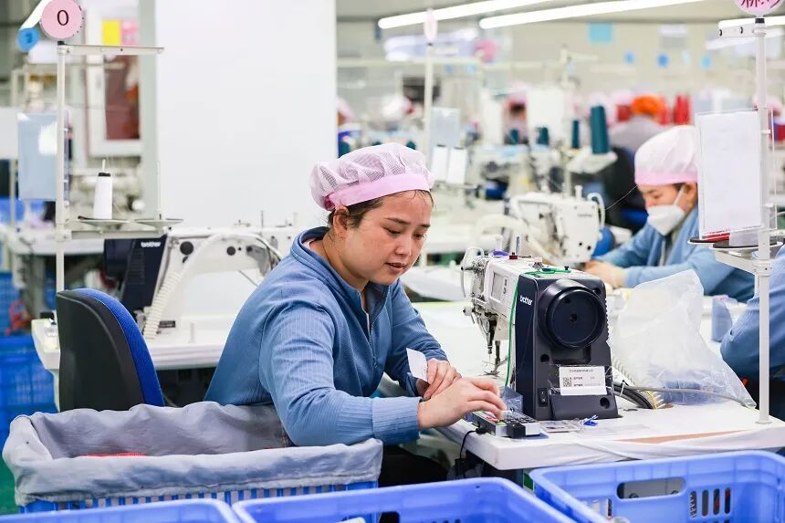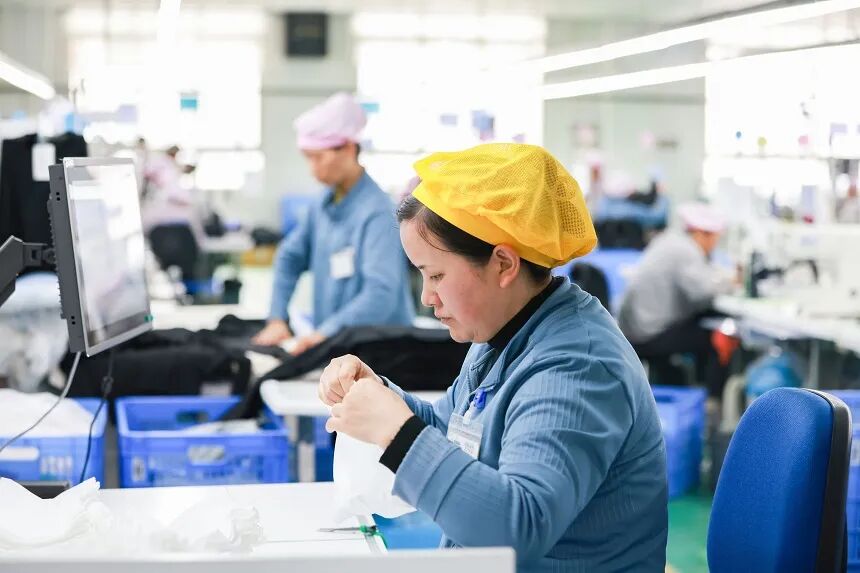 “2025年的目标是实现产值3.2亿元,产能1500万件。截至9月底,已完成产值2.8亿元。”贵州鼎盛服饰有限公司人资行政经理秦湘红介绍到。“我们主要为法国迪卡侬、日本优衣库以及李宁、安踏等知名品牌代工,主打速干、透气型运动服饰,深受国内外客商青睐。”