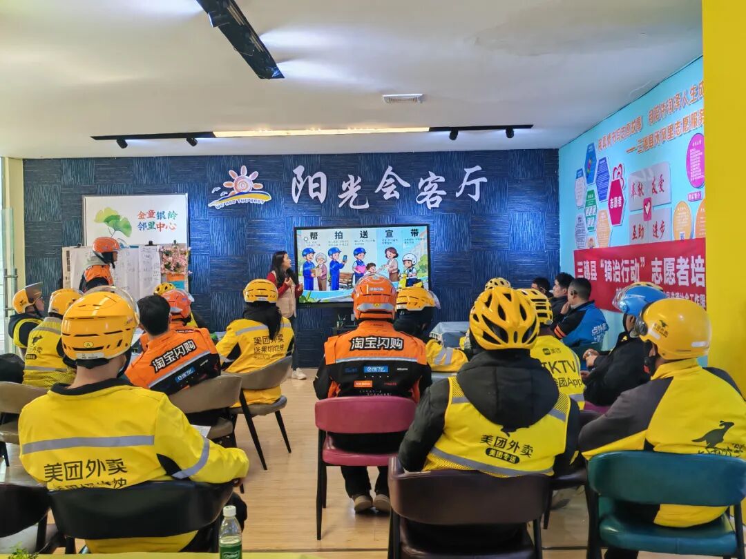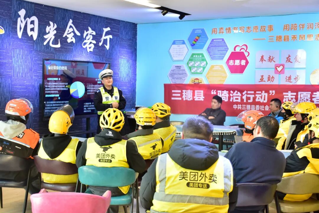 近日,三穗县“骑治行动”志愿者培训在禾风里圆满落幕。本次培训共计开展3场次,覆盖快递员、外卖骑手志愿者120余名。培训由三穗县委社会工作部、三穗县交通运输局、三穗县市场监督管理局联合主办,天柱县进德社会工作服务中心承办,旨在让骑手从“城市穿梭者”变身基层治理的“生力军”。