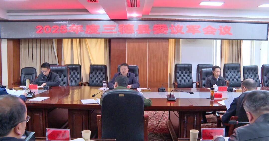 12月29日,2025年度三穗县委议军会议召开。县委书记、县人武部党委第一书记刘明波主持会议并讲话。县政协主席陈永祥,县委副书记文佳宏,县领导赵平、潘勇、周茂、唐崟、肖宇、王媛、陈腊梅、刘文军、张全通等参加。