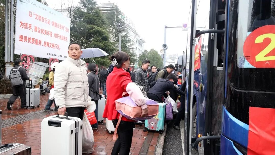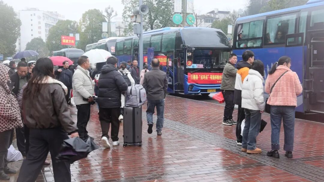 “现在正好是春运高峰期,很难买到车票的,刚好我们县提供免费专车服务,我就带着我的小朋友一起乘坐这个车,可以节约几百块钱,挺方便的。”务工群众杨红云说。