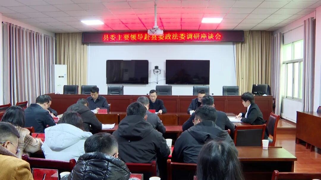 3月2日,县委书记杨波到县委政法委调研指导政法工作并召开座谈会。县委常委、县委政法委书记潘勇及县委政法委班子成员等参加。