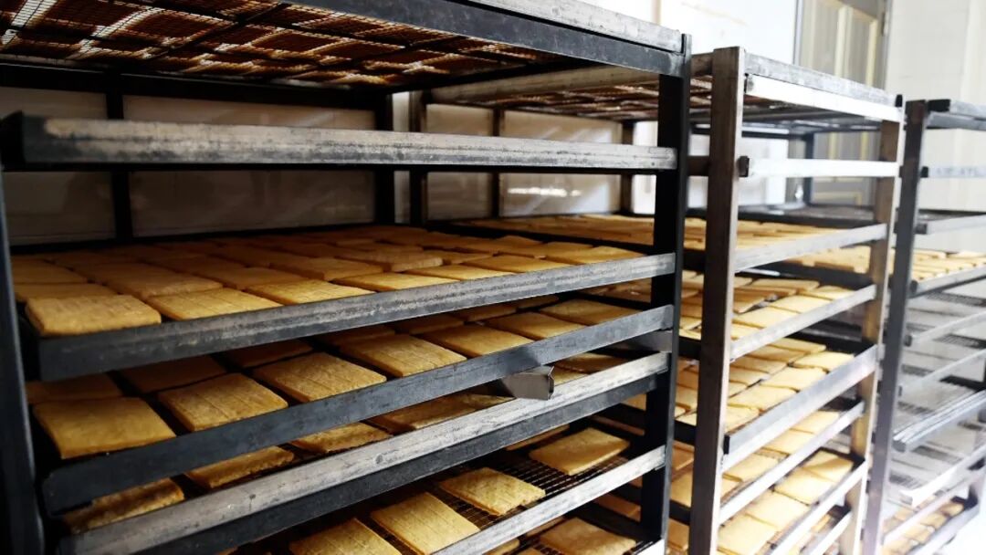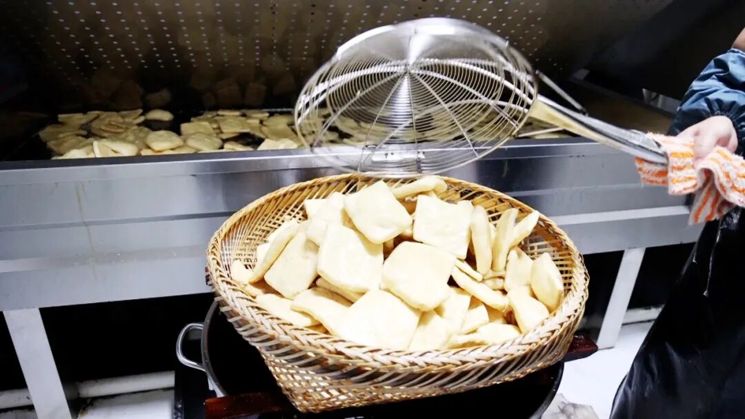 清晨,在雪洞镇的三穗县山里人家食品有限公司内,豆香弥漫。工人手持刀具,将压制好的豆腐整齐切成块;另一边,金黄的豆腐片在油锅中翻滚,捞出后沥去余油,每道工序井然有序。