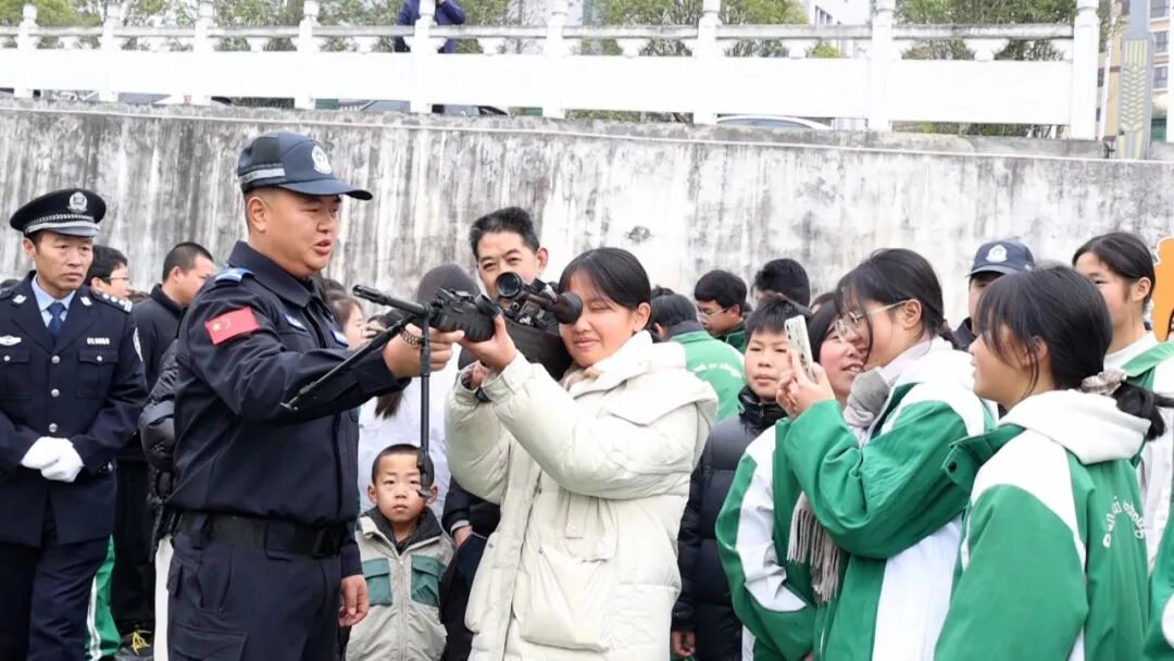升旗仪式结束后,三穗县公安局启动“警营开放日”活动,邀请了三穗县第二中学学生走进警营。在装备展示区,整齐陈列的枪械等警用装备,特巡警队员耐心为学生讲解装备的用途与使用方法,并在保障安全的前提下,让孩子们近距离观摩、触摸,让孩子们了解各类警用装备;负责宣传的民警则围绕防范网络电信诈骗、禁毒、交通安全、防火防盗等常识开展宣讲,现场气氛热烈融洽。