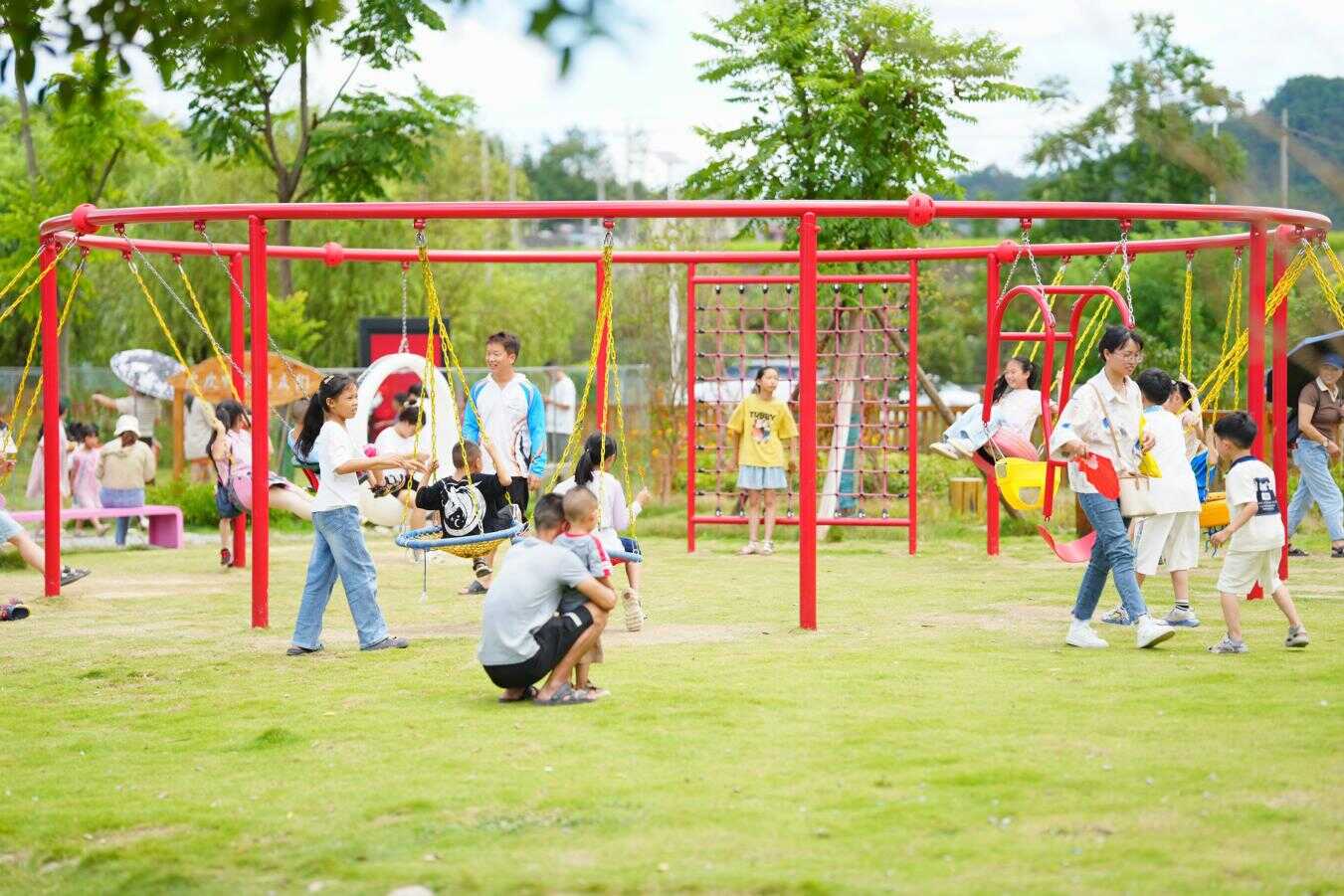 7.童趣乐园。这里仿佛是一个充满魔法和欢笑的梦幻世界,在这里你能感受到浓浓的童真氛围,仿佛回到了无忧无虑的童年时光。乐园里有网红秋千、传声筒、蹦蹦床、滑滑梯、攀爬架、打卡墙等无动力设施,各种各样的游乐设施,让人眼花缭乱。最有趣的是蹦蹦床和传声筒,让孩子们在跳跃和欢笑中释放活力,感受声音的奇妙传递。
