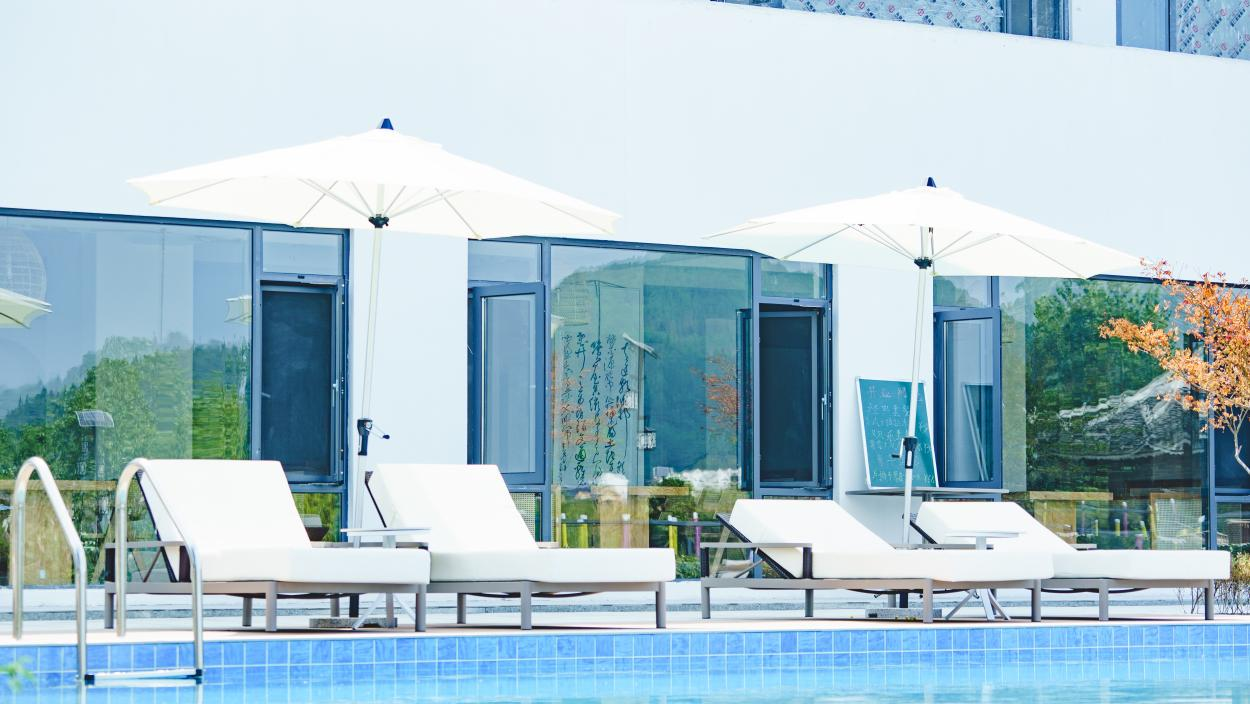 8.清溪美宿。清溪流淌,麻鸭戏水,一幅乡村振兴好风光。这里是无边际泳池、网红咖啡馆、侘寂风乡村度假民宿等多功能于一体的“清溪美宿”。民宿和自然山水、民族文化融合,观赏“桃花尽日随流水,洞在清溪何处边”的美宿美景。