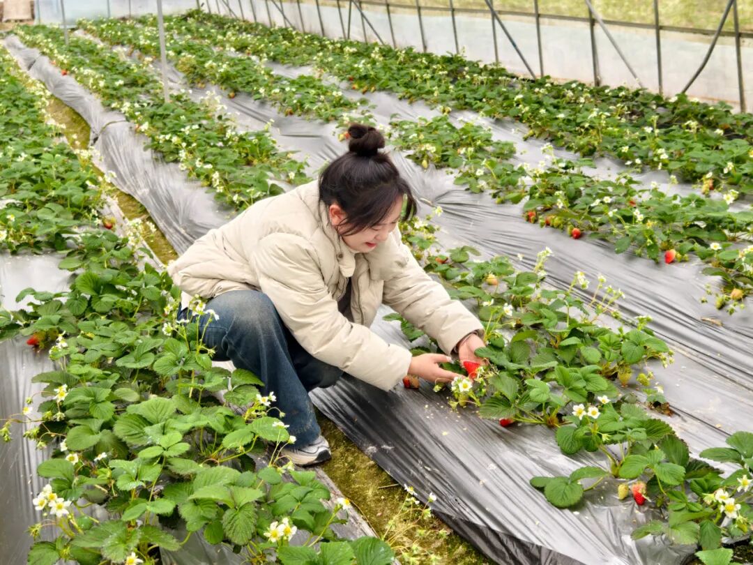 走进草莓采摘大棚温室内,一株株草莓茎上结满了红润的草莓,空气中散发着浓浓的果香。前来采摘的游客一边仔细挑选草莓,一边聊天、拍照,有说有笑,享受着美好的田园时光。