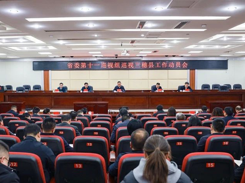 根据省委关于巡视工作的统一部署,2025年3月17日,省委第十一巡视组巡视三穗县工作动员会召开。会前,巡视组与三穗县党政主要负责人进行见面沟通,通报了巡视任务和工作安排。会上传达了省委书记、省人大常委会主任徐麟在省委常委会会议听取十三届省委第六轮巡视工作情况汇报时的讲话精神,并宣读了对三穗县的巡视通知;省委第十一巡视组组长陈金平就即将开展的巡视工作作了动员讲话;受省政协副主席、州委书记、州委巡察工作领导小组组长李建的委托,黔东南州委巡察工作领导小组成员、州纪委副书记、州监委副主任、州委巡察办主任汪勇就三穗县配合开展巡视工作提出要求,三穗县委书记刘明波就配合做好巡视工作作了表态发言。